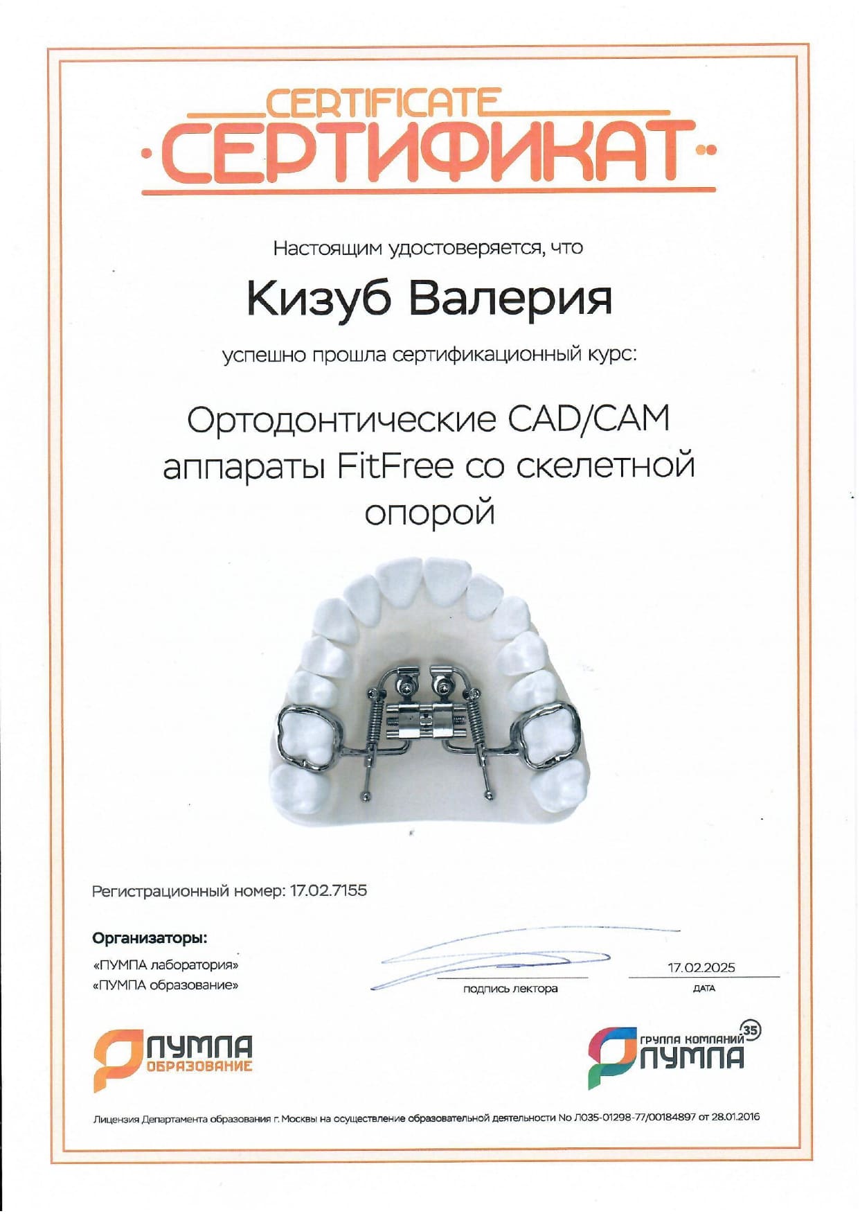 - 2025 г. — Продвинутые цифровые протоколы Straumann (IT|, Санкт-Петербург).